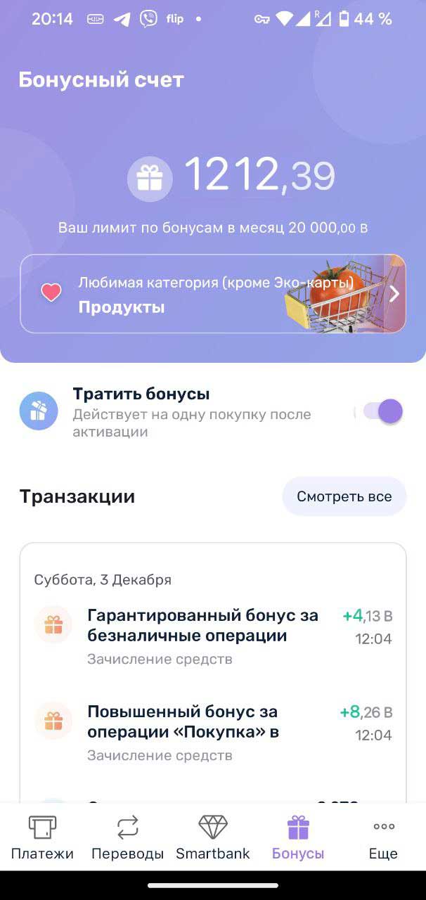 Перейдите в раздел «Бонусы» в приложении и включите переключатель ‘Тратить бонусы’.